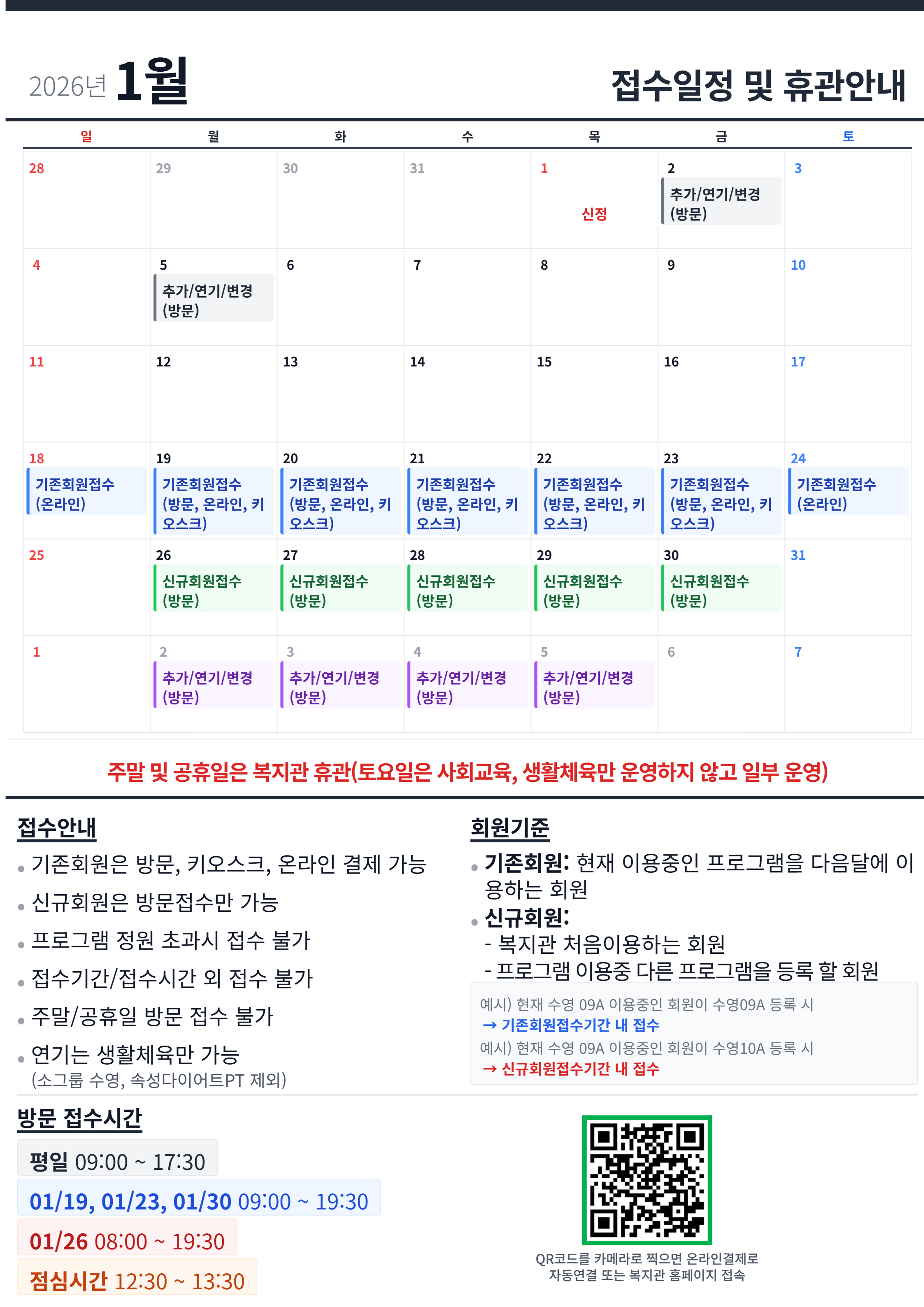 프로그램등록 일정 및 휴관(2026년 1월 달력)