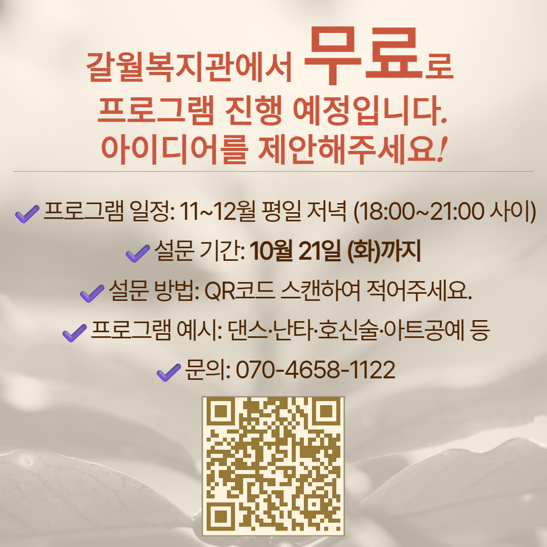 <복지3과> 복지관 무료 프로그램 선호조사