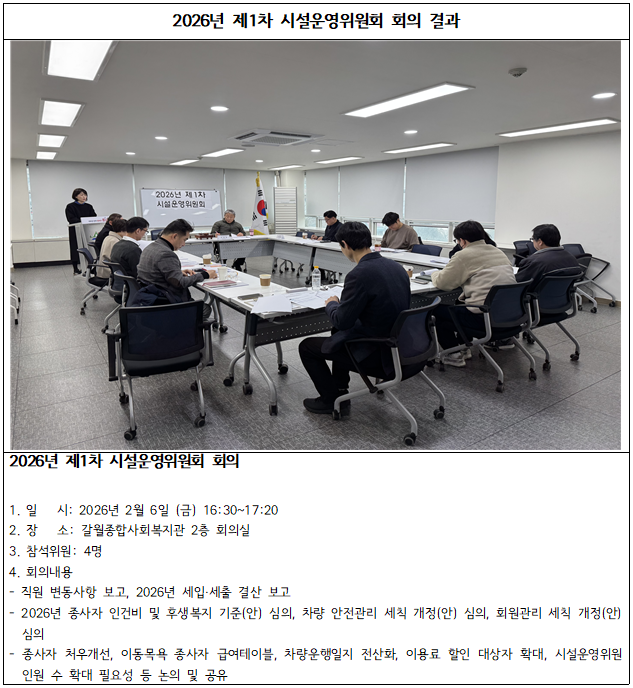 2026년 제1차 시설운영위원회 회의 결과