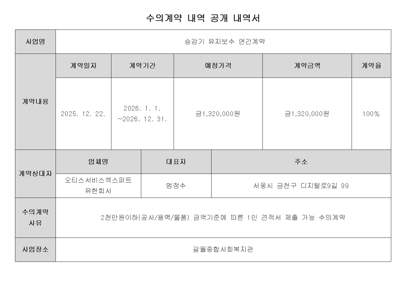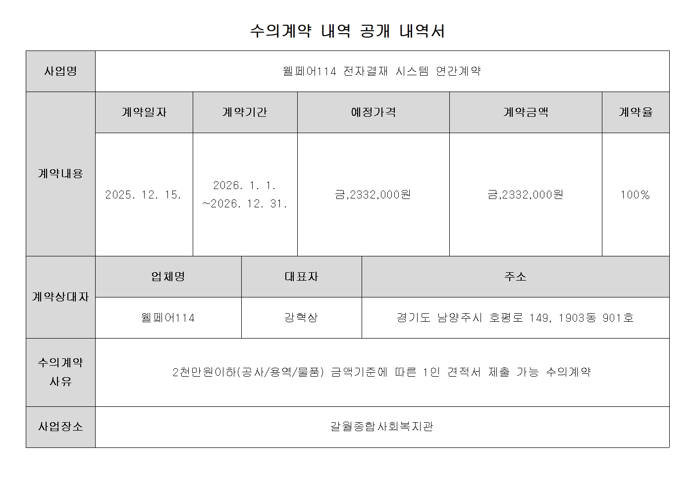 수의계약 내역 공개 내역서(2025년 12월)