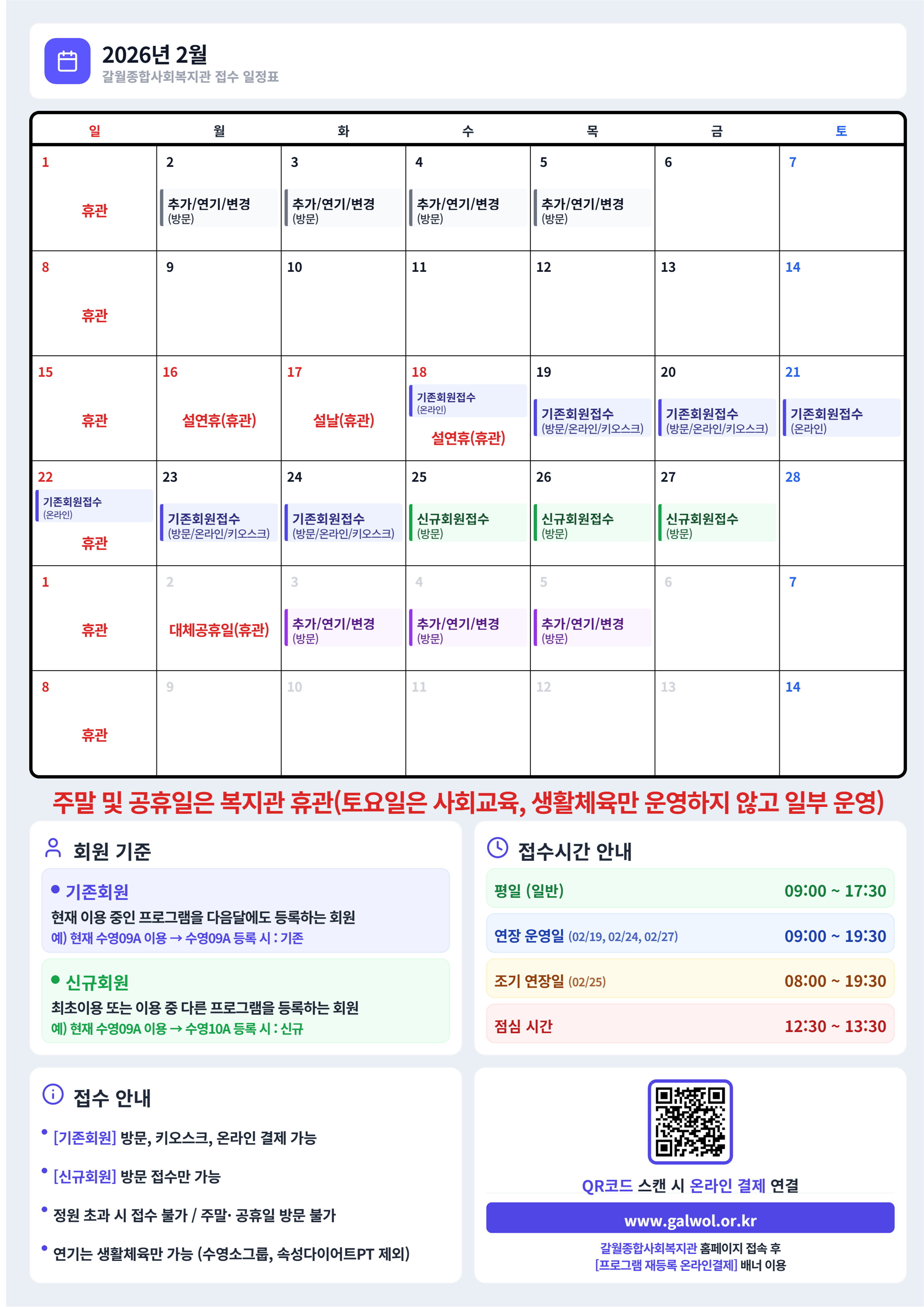 프로그램등록 일정 및 휴관(2026년 2월 달력)