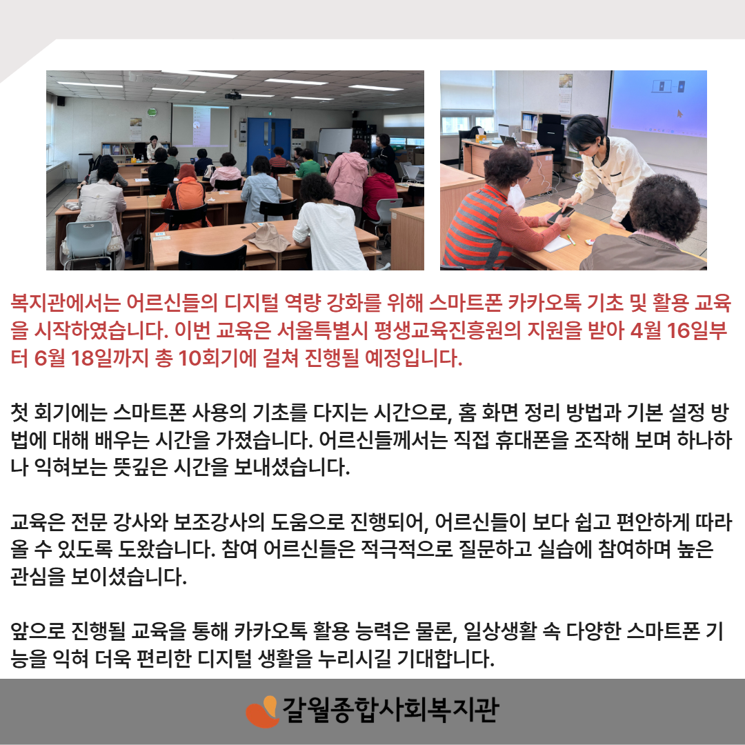 <복지1과> 디지털 문해학습장 스마트폰 카카오톡 기초 및 활용 교육 시작