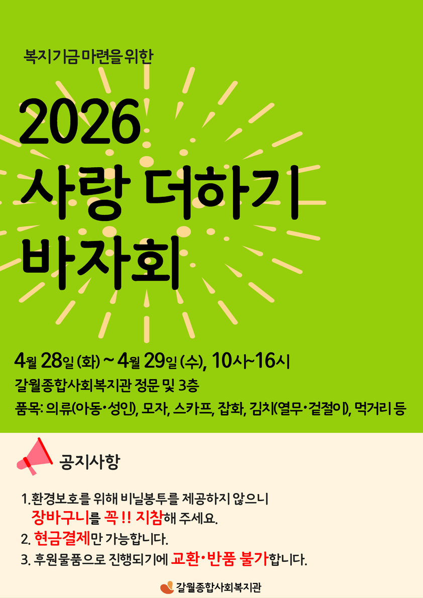 - · [이용안내] 갈월종합사회복지관 사무편람 공유 2026-04-15