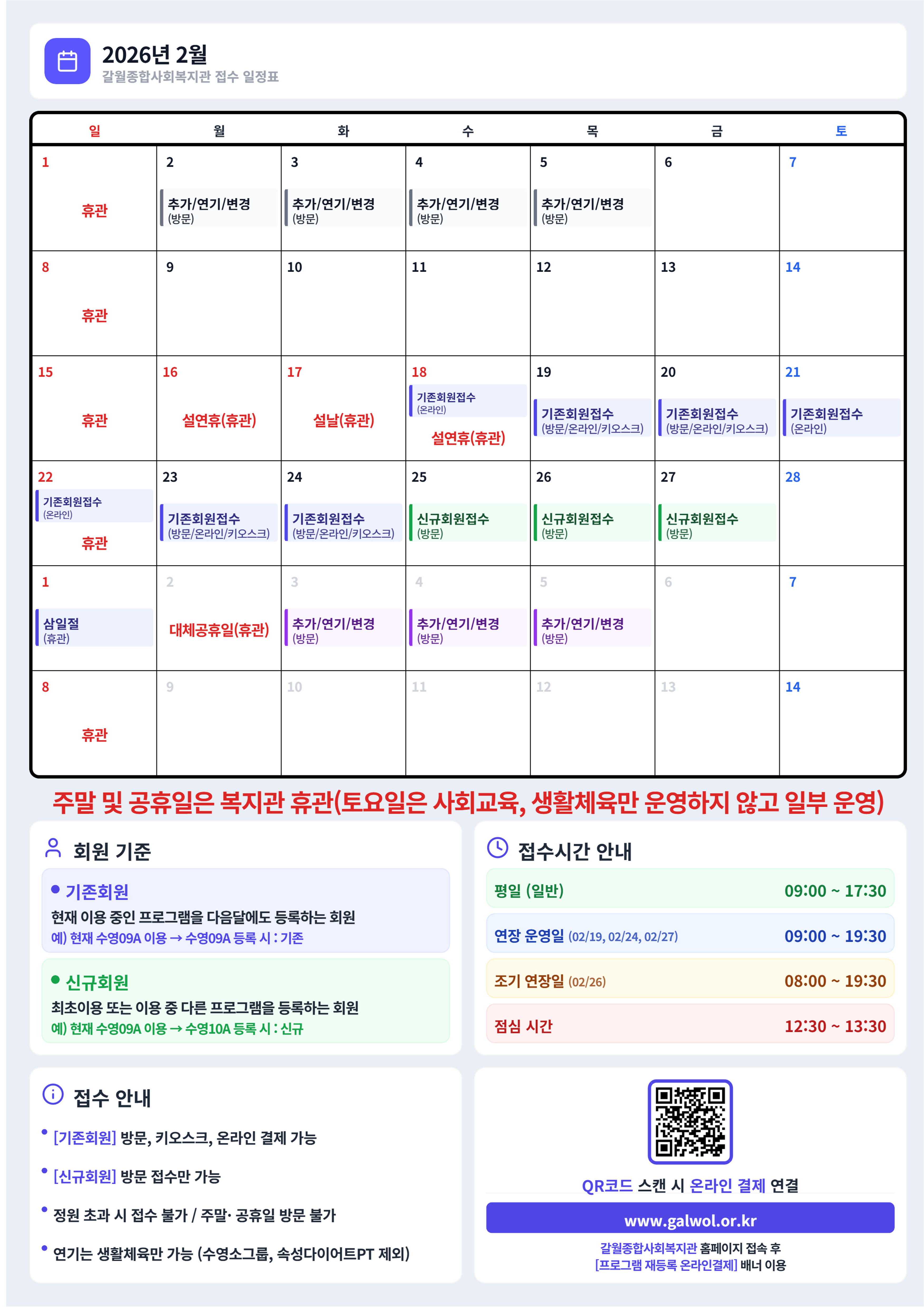 - · 프로그램등록 일정 및 휴관(2026년 2월 달력)2026-02-02
